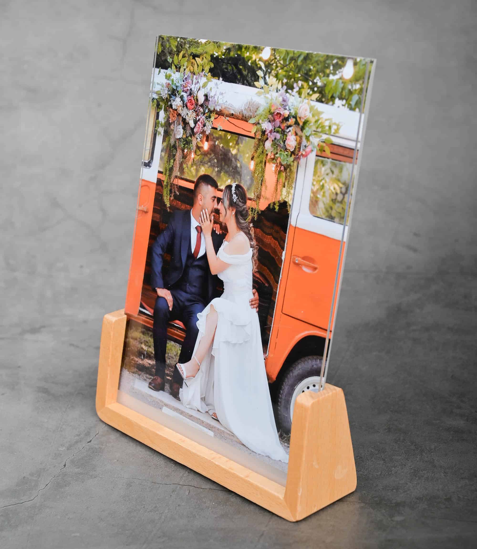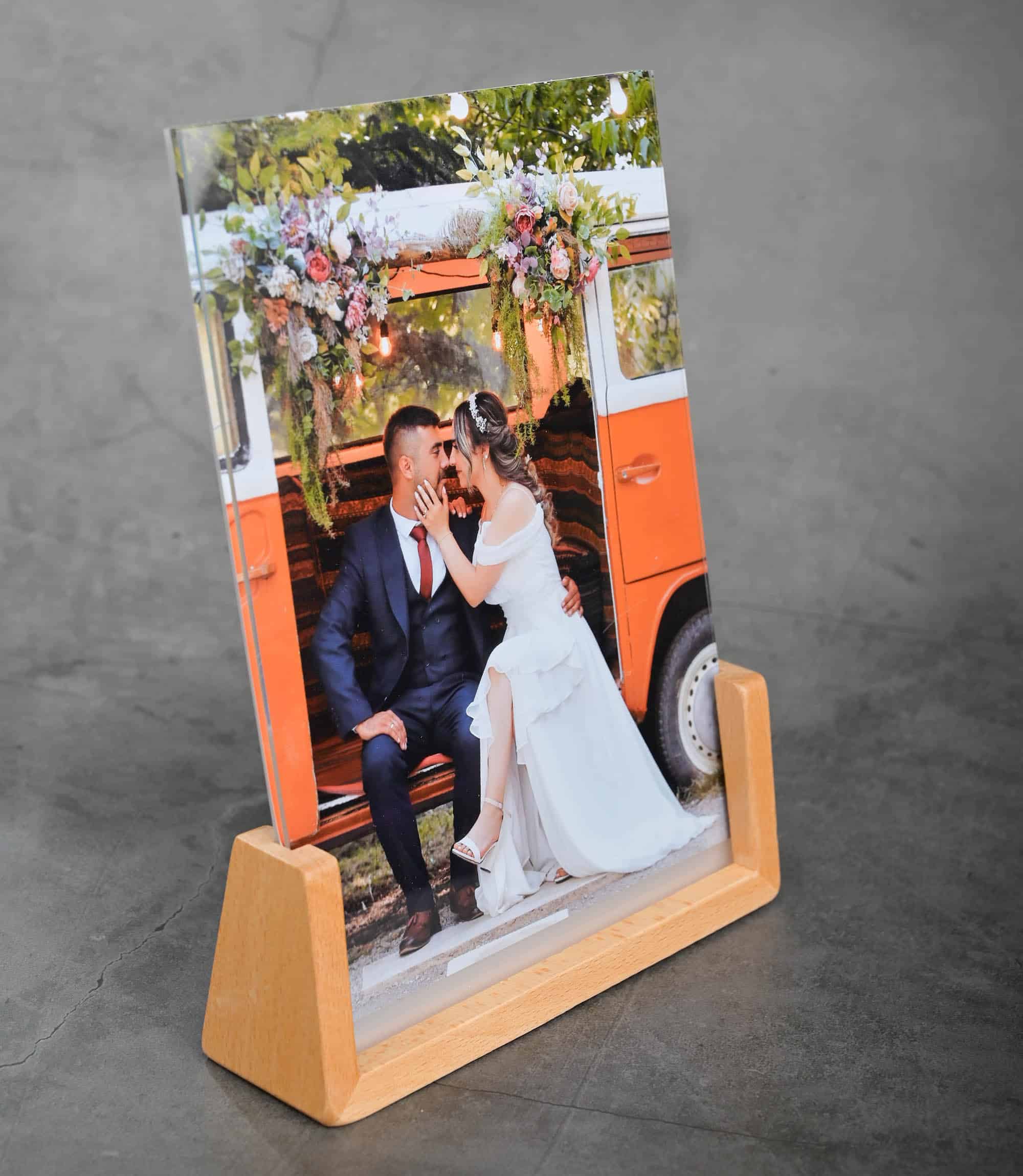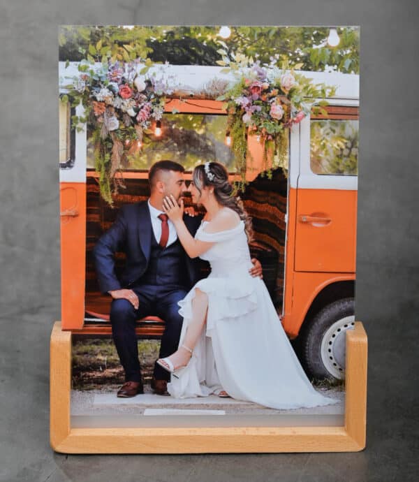 Porta-Foto 10×15 vertical/horizontal metacrilato con arco de madera(Con foto impresa)