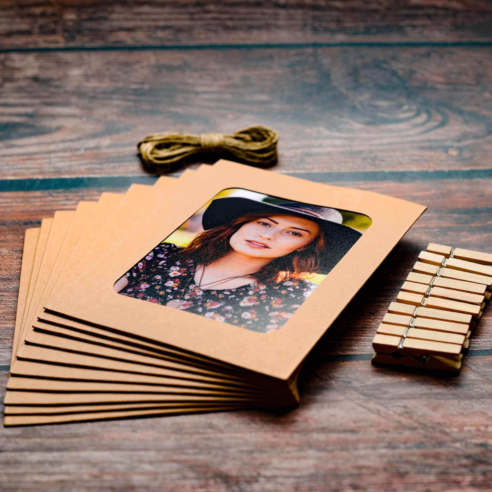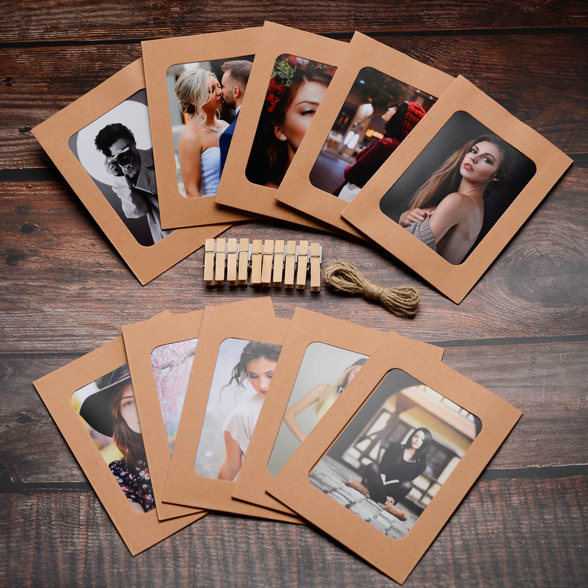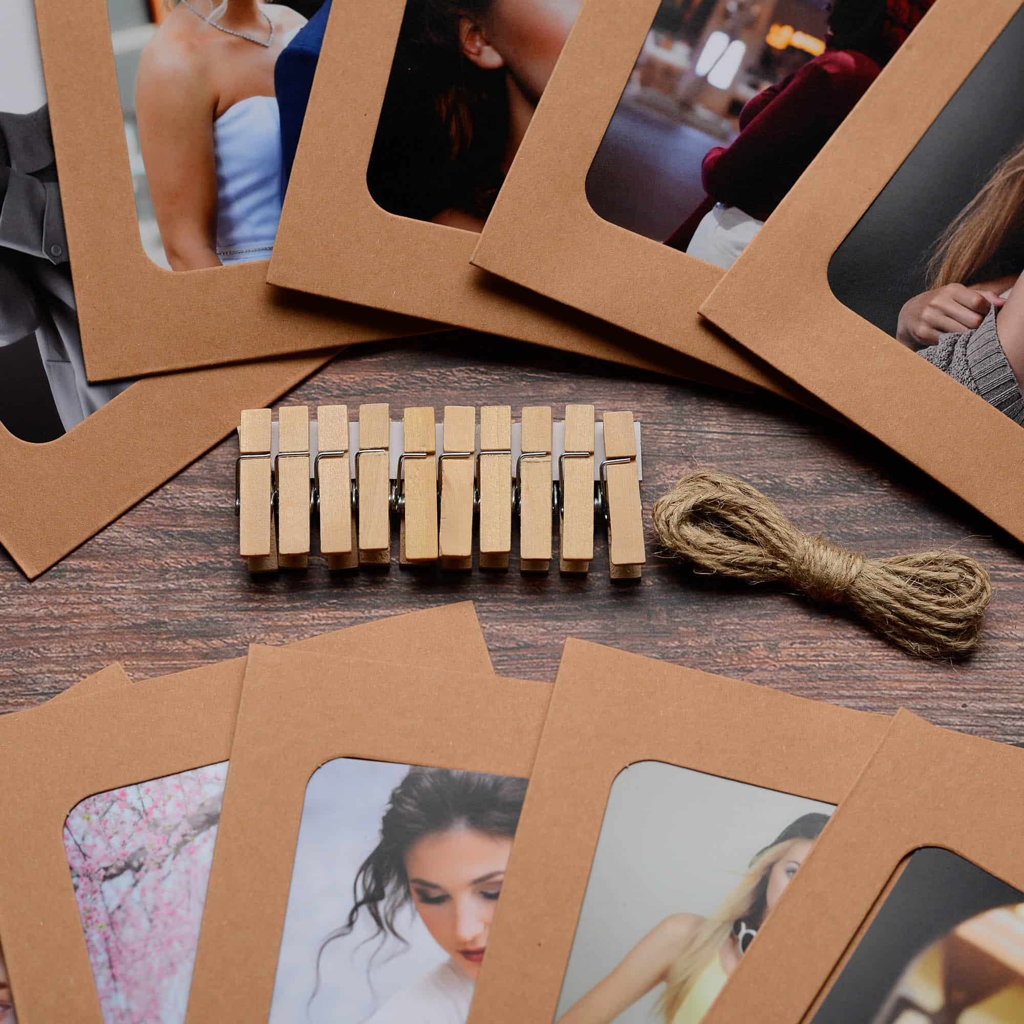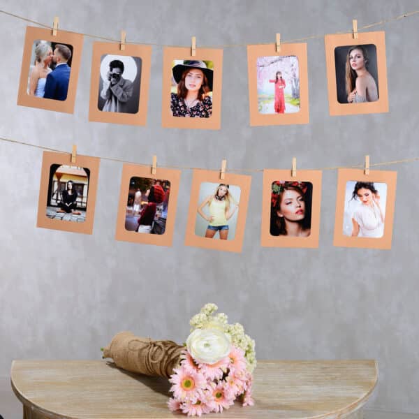 Porta-Fotos colgante Kraft de 10 fotos, marco 10×15 cm foto 9×13 cm (fotos+trabas+cuerda incluidos)