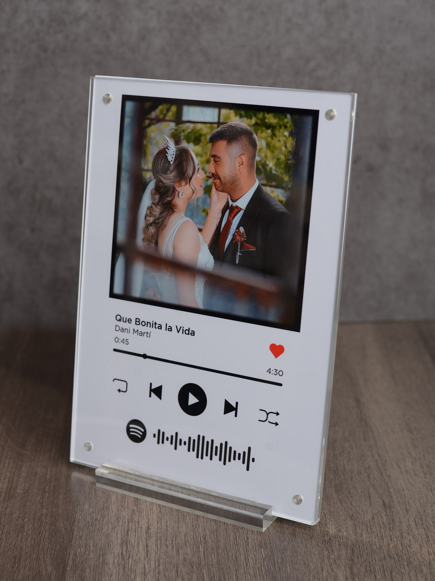 Un artículo «portafoto Spotify» es un producto personalizado que combina elementos decorativos con funcionalidad. Este tipo de portafoto está inspirado en la interfaz de Spotify, presentando una imagen o fotografía acompañada de un código escaneable que vincula a una canción o lista de reproducción en la plataforma.